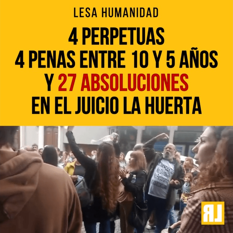 Después de 2 años de debate oral, el Tribunal Oral Federal de Mar del Plata se trasladó a Tandil para leer el veredicto del juicio La Huerta, que abarcó hechos ocurridos en Tandil, Azul, Olavarría y Las Flores. No tenemos registros de que se haya alcanzado tan alta proporción de absoluciones (27 sobre 35) en […]